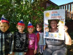 Велопробег "Российский триколор", флешмоб "Три волшебных цвета", акция "Окна России 2023", торжественное построение, беседы, музыкальные игры